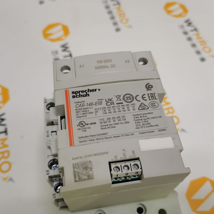 瑞士Sprecher+Schuh CA9-146-EIB接觸器,是該品牌低壓工業控制產品中的佼佼者。它延續了品牌產品精密制作、嚴格測試的優良傳統,性能遠超行業標準。此接觸器結合了CA7系列的簡單功能與寬馬力范圍所需的堅固性能,占地面積比同尺寸等級傳統接觸器更小,節省安裝空間。具備交流或直流操作模式,可逆線圈端接,還兼容電子過載繼電器,支持PLC接口,正面或側面安裝輔助觸點,機械聯鎖等設計,功能豐富且實用。